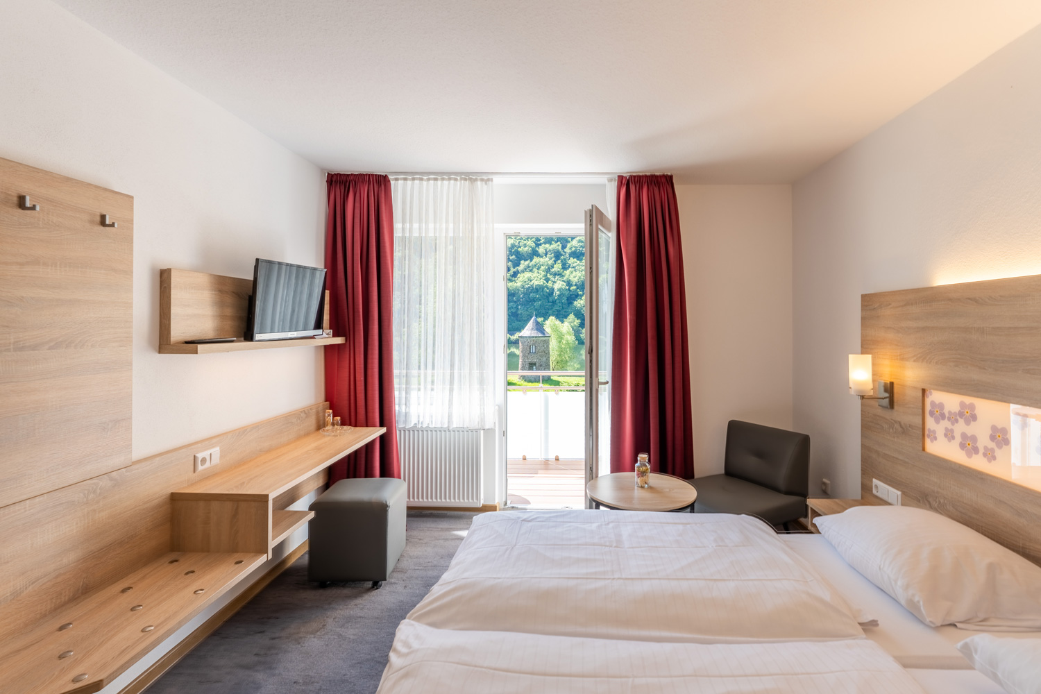 Die individuell eingerichteten Zimmer verfügen allesamt über Dusche/WC/Flat-TV/Radiowecker/Föhn sowie überwiegend einen Balkon mit oder ohne Moselblick.